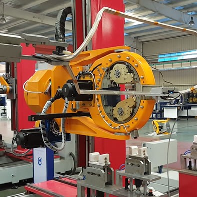 非接触式3D示教系统为我公司最新研发。由一套尺寸仅为130*75*35mm的测量装置组成,安装于包带机包带头上,配套程序内置于包带机系统内。适用于我司不同型号的CNC及机器人包带机使用。此示教系统的导入,结束了人工示教操作的历史,从而改善了线示教精度的稳定性,因此提高了包带品质。